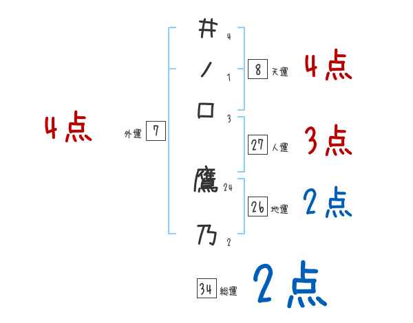 井ノ口鷹乃さんの画数の鑑定結果