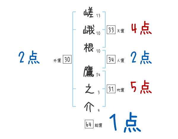 嵯峨根鷹之介さんの画数の鑑定結果