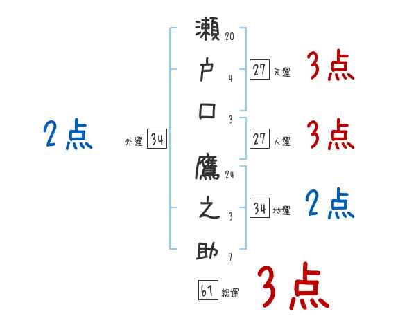 瀬戸口鷹之助さんの外運は34画の2つ星