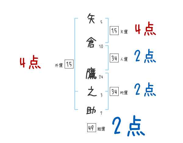 矢倉鷹之助さんの画数の鑑定結果