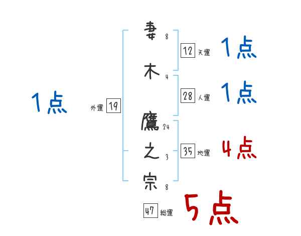 妻木鷹之宗さんの画数の鑑定結果