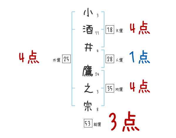 小酒井鷹之宗さんの画数の鑑定結果