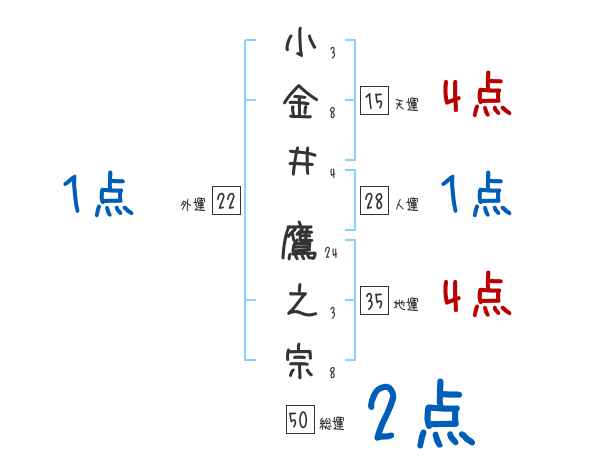 小金井鷹之宗さんの画数の鑑定結果