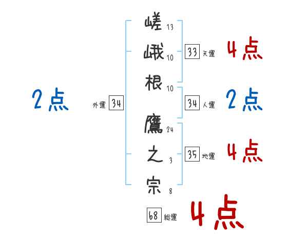 嵯峨根鷹之宗さんの画数の鑑定結果
