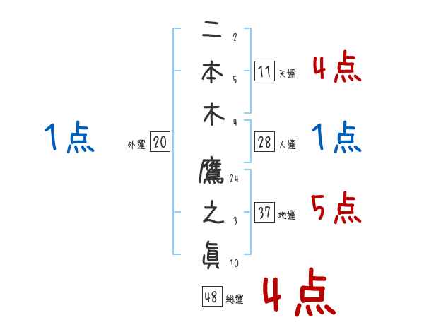 二本木鷹之眞さんの画数の鑑定結果