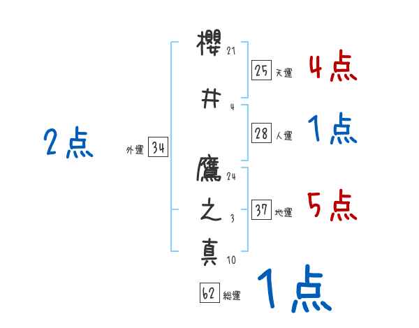 櫻井鷹之真さんの画数の鑑定結果