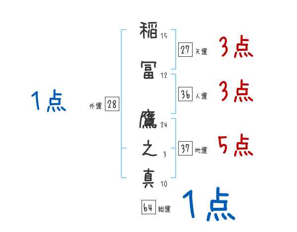 稲冨鷹之真さんの画数の鑑定結果