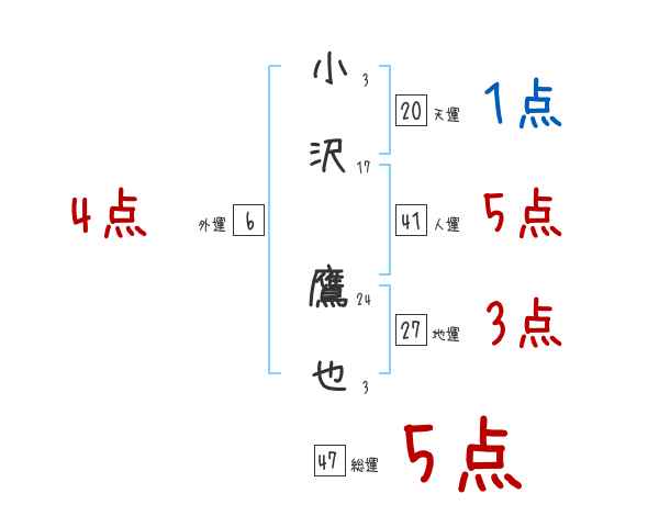 小沢鷹也さんの画数の鑑定結果
