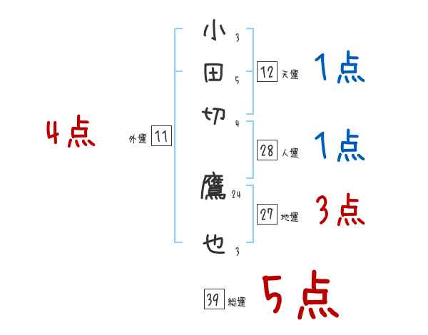 小田切鷹也さんの画数の鑑定結果
