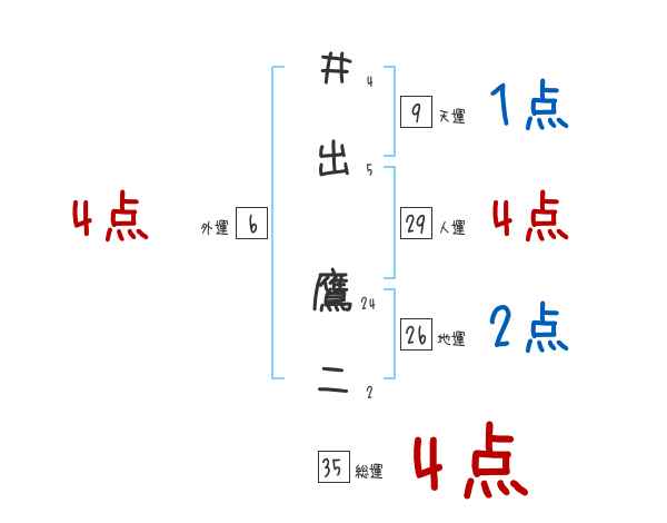 天運![]() | 井出鷹二さんの天運は9画の1つ星!消極的で才能を発揮することが苦手なことも。周りの意見に耳を傾けましょう。 家系が持つ宿命的な運勢を表します。祖先から受け継いだ苗字ですので自分の力が及びません。家柄を象徴します。 |