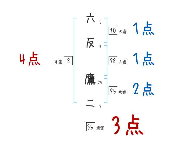 六反鷹二さんの画数の鑑定結果