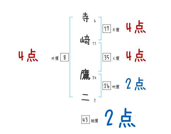 寺﨑鷹二さんの画数の鑑定結果