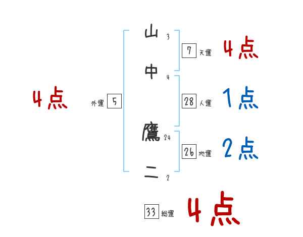 山中鷹二さんの画数の鑑定結果