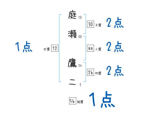 庭瀬鷹二さんの画数の鑑定結果