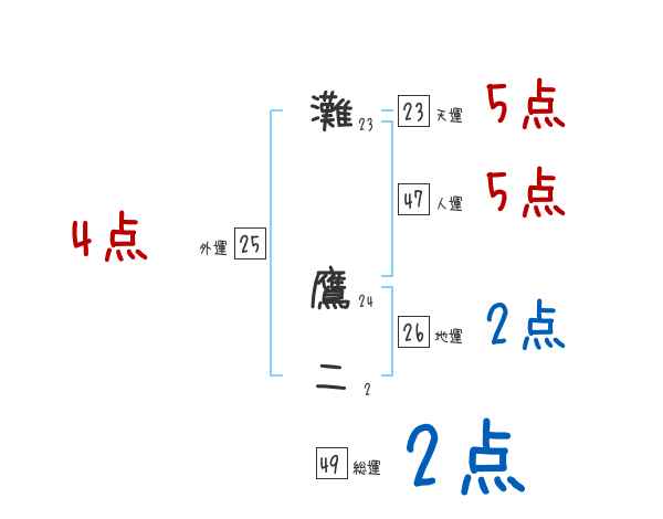 灘鷹二さんの画数の鑑定結果