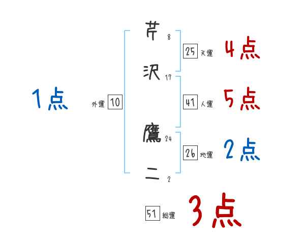 芹沢鷹二さんの画数の鑑定結果