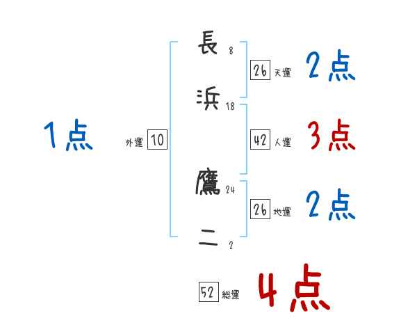 長浜鷹二さんの画数の鑑定結果