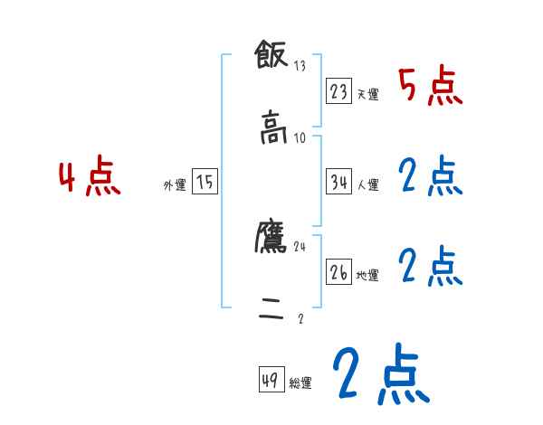 飯高鷹二さんの画数の鑑定結果