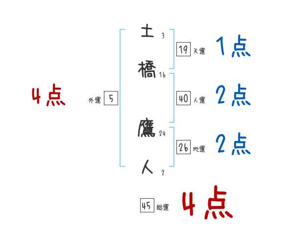 土橋鷹人さんの画数の鑑定結果