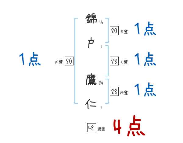 天運![]() | 錦戸鷹仁さんの天運は20画の1つ星!社交が苦手。人とは違った才能があり波乱万丈な人生かも。 家系が持つ宿命的な運勢を表します。祖先から受け継いだ苗字ですので自分の力が及びません。家柄を象徴します。 |
