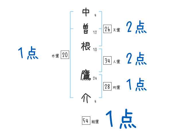 中曽根鷹介さんの画数の鑑定結果