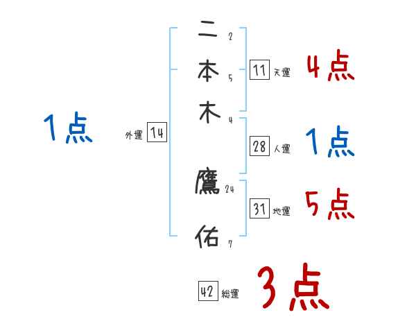 天運![]() | 二本木鷹佑さんの天運は11画の4つ星!着実に富や地位を得る幸運な人生。 家系が持つ宿命的な運勢を表します。祖先から受け継いだ苗字ですので自分の力が及びません。家柄を象徴します。 |