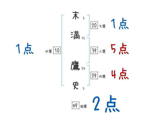 総運![]() | 末満鷹史さんの総運は49画の2つ星!不安定な性格で明暗がある人生。周りの人には支援されやすい。 あなたの人生を表す1番重要な運勢です。生涯を通じて影響する総合運となり、主に50歳以降の晩年期に影響を及ぼします。 |