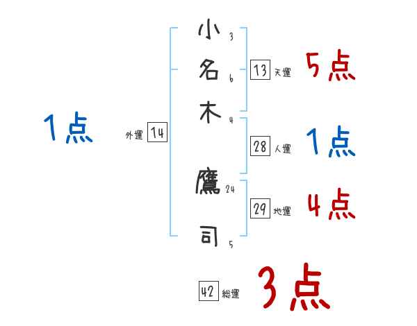小名木鷹司さんの画数の鑑定結果