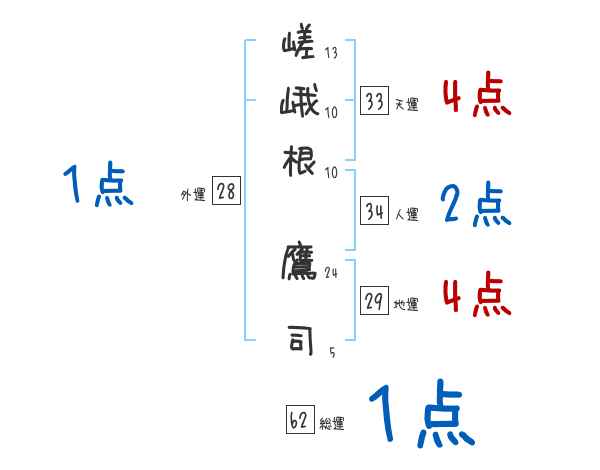 嵯峨根鷹司さんの画数の鑑定結果