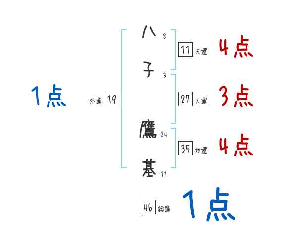 八子鷹基さんの画数の鑑定結果