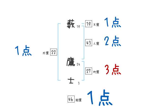 薮鷹士さんの画数の鑑定結果