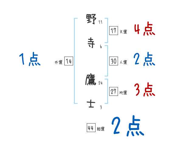 野寺鷹士さんの画数の鑑定結果