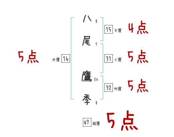 八尾鷹季さんの画数の鑑定結果