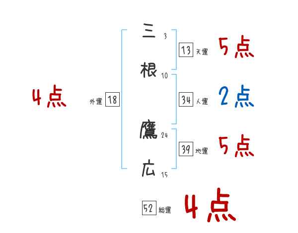 三根鷹広さんの画数の鑑定結果