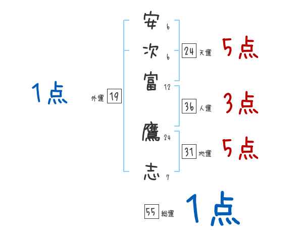 安次富鷹志さんの画数の鑑定結果