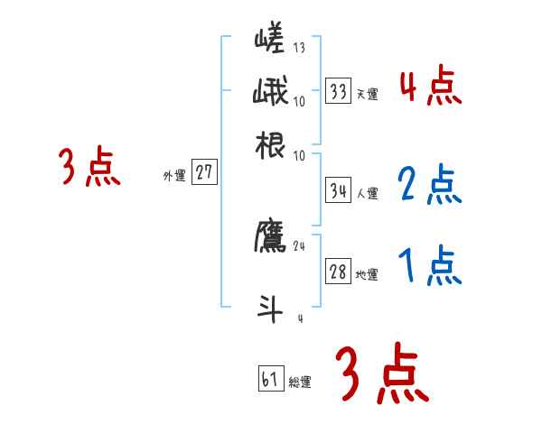 嵯峨根鷹斗さんの画数の鑑定結果
