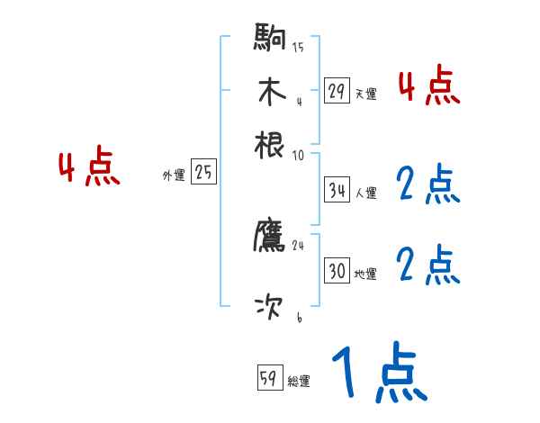 駒木根鷹次さんの画数の鑑定結果