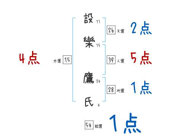 外運![]() | 設樂鷹氏さんの外運は15画の4つ星!人徳があり出世する。順調に物事を進め円満な人生。 生活面を象徴する運勢です。外部から受ける影響力を表し、結婚運、家庭運や職場、環境への順応性を表します。 |