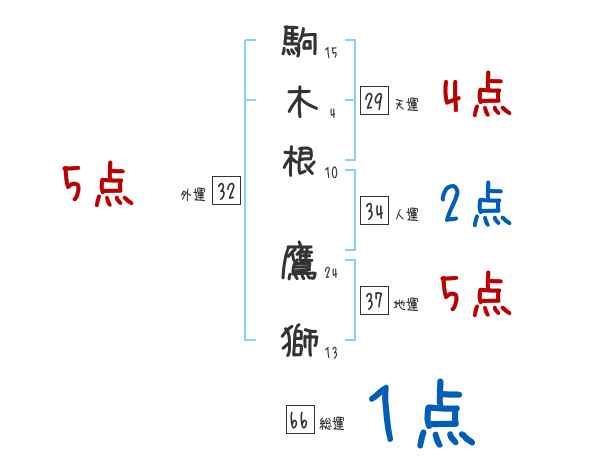 駒木根鷹獅さんの画数の鑑定結果