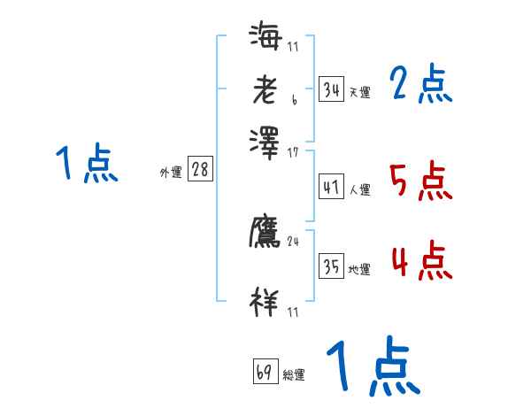 海老澤鷹祥さんの画数の鑑定結果
