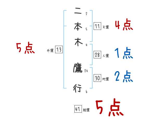 地運![]() | 二本木鷹行さんの地運は30画の2つ星!浮き沈みの激しさに注意しましょう。 個性を表す基礎的な運勢です。性格形成や対人関係、行動力など家庭環境に影響されます。主に誕生してから20歳くらいまでの若年期の運勢を表します。 |