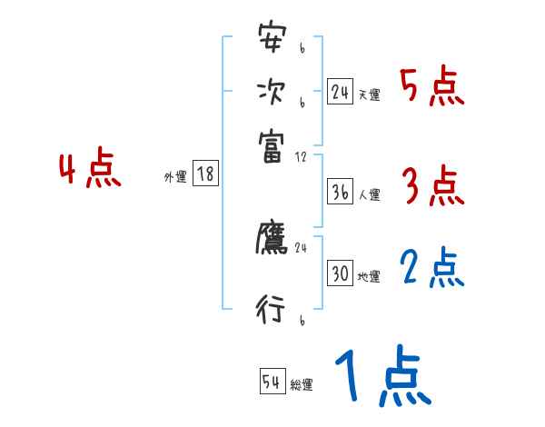 安次富鷹行さんの画数の鑑定結果