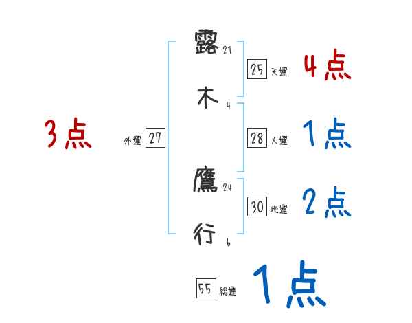 露木鷹行さんの画数の鑑定結果