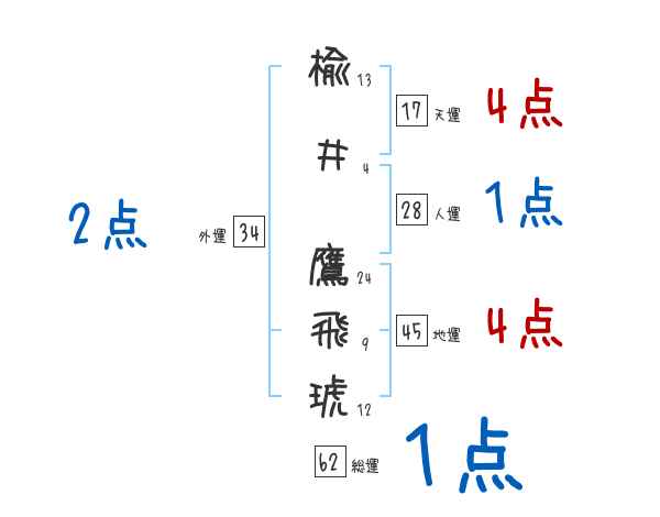 楡井鷹飛琥さんの画数の鑑定結果