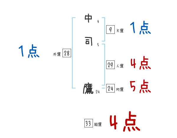 中司鷹さんの画数の鑑定結果