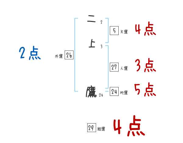 二上鷹さんの画数の鑑定結果