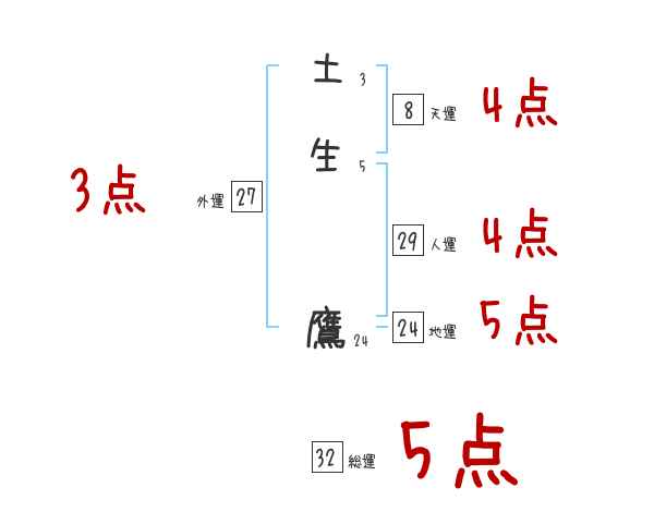 土生鷹さんの画数の鑑定結果