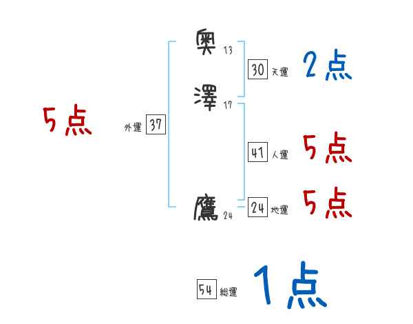 奥澤鷹さんの画数の鑑定結果