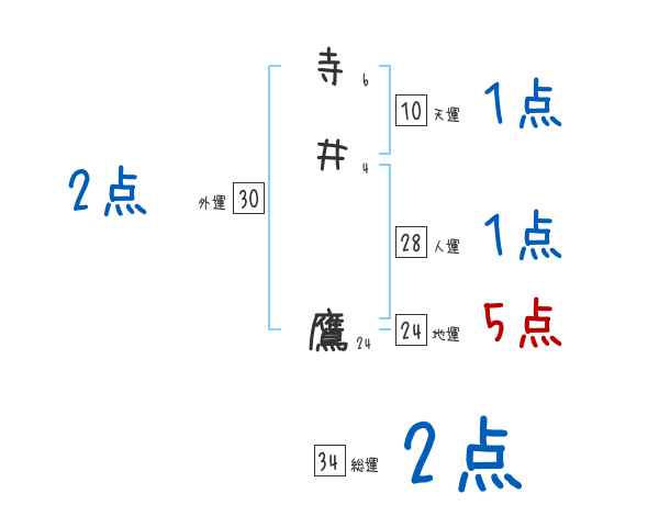 寺井鷹さんの総運は34画の2つ星