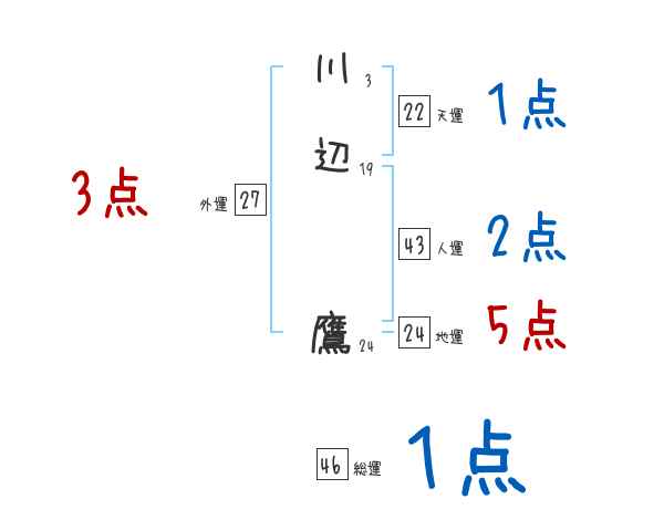 川辺鷹さんの画数の鑑定結果